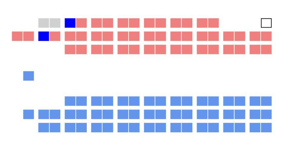 | Keywords: 40th Can Senate.svg en Seating plan for the Canadian Senate own original text I created this work entirely by myself 1 2008-11-20 Rrius talk Rrius Original upload log en wikipedia 40th+Can+Senate svg wikitable - 2013-09-17 19 52 450×246× 5790 bytes Abjiklam <nowiki>fixed fuzzy outline for empty seats</nowiki> - 2011-04-05 20 56 450×246× 5750 bytes Rrius <nowiki>Revert change happened after dissolution so isn't part of the 40th Parliament</nowiki> - 2011-04-05 18 50 450×246× 5754 bytes Rrius <nowiki>updates for manning and smith</nowiki> - 2011-03-22 04 29 450×246× 5750 bytes Rrius <nowiki>Lavigne resignation</nowiki> - 2011-02-22 06 42 450×246× 5751 bytes Rrius <nowiki>Updates per official seating plan</nowiki> - 2010-12-21 00 19 450×246× 5758 bytes Rrius <nowiki>Updates for two new appointments A new official seating plan will not likely be available until the Senate reconvenes on 1 February </nowiki> - 2010-12-06 05 02 450×246× 5660 bytes Rrius <nowiki>corrects display of vacant seats</nowiki> - 2010-12-06 04 55 450×246× 5674 bytes Rrius <nowiki>Lapointe out</nowiki> - 2010-11-30 20 45 450×246× 5665 bytes Rrius <nowiki>seat arrangement per source</nowiki> - 2010-11-30 00 51 450×246× 5665 bytes Rrius <nowiki>Stollery out</nowiki> - 2010-11-14 06 20 450×246× 5656 bytes Rrius <nowiki>minor update switches placement of Braley and Ataullahjan </nowiki> - 2010-07-09 20 10 450×246× 5656 bytes Rrius <nowiki>updates for Salma Ataullahjan appointment</nowiki> - 2010-06-01 20 55 450×246× 5606 bytes Rrius <nowiki>Updates for Pitfield retirement</nowiki> - 2010-05-21 03 12 450×246× 5604 bytes Rrius <nowiki>Reflects Braley's appointment</nowiki> - 2010-05-17 04 49 450×246× 5606 bytes Rrius <nowiki>Updates for Keon retirement</nowiki> - 2010-04-10 21 43 450×246× 5604 bytes Rrius <nowiki>Conforms to recent seat shifting per http //www parl gc ca/information/about/process/senate/SeatingPlan/SenateSeatingPlan pdf </nowiki> - 2010-03-05 01 34 450×246× 5604 bytes Rrius <nowiki>Adjusts per latest seating plan Note that Murray remains at the Throne end of the front row of the Government side and that Pitfield Cools and McCoy are at the same end of the rear row of the Opposition side Previously Murray McCoy and Cools had s</nowiki> - 2010-03-03 20 55 450×246× 5506 bytes Rrius <nowiki>Updates per latest seating plan Please note that one of the two Progressive Conservatives Lowell Murray is for the moment seated in the front row of the Government side while the other Elaine McCoy is seated with the non-affiliated - 2010-01-29 21 21 450×246× 5762 bytes en User Rrius Rrius <nowiki>Updates for new appointments leaving as much as possible the current seating in tact I did this in part because it is so hard to know exactly where the independents Anne Cools the Progressive Conservatives and Raymond Lavigne's empty seat will go </nowiki> - 2010-01-07 02 09 450×246× 5611 bytes Rrius <nowiki>Switches which blue is dark for the benefit of matching the CPC on this map with the CPC on the other 40th Can House image </nowiki> - 2010-01-07 02 07 450×246× 5611 bytes Rrius <nowiki>Darkens CPC per talk</nowiki> - 2010-01-03 08 55 450×246× 5611 bytes Rrius <nowiki>Updates for grafstein</nowiki> - 2009-12-15 00 32 450×246× 5609 bytes Rrius <nowiki>Updates for Milne retirement</nowiki> - 2009-11-30 05 58 450×246× 5607 bytes Rrius <nowiki>Updates for Prud'homme retirement </nowiki> - 2009-11-12 00 51 450×246× 5605 bytes Rrius <nowiki>Ditto but regarding the Cook vacancy </nowiki> - 2009-11-10 03 04 450×246× 5612 bytes Rrius <nowiki>Corrects last version; I blanked the seat rather than making it a vacant seat </nowiki> - 2009-11-07 05 13 450×246× 5619 bytes Rrius <nowiki>Updates for Bryden resignation with current official seating plan </nowiki> - 2009-10-07 03 42 450×246× 5603 bytes Rrius <nowiki>Updates to reflect Cook vacancy reflects official seating chart </nowiki> - 2009-09-16 02 02 450×246× 5601 bytes Rrius <nowiki>Updates to reflect most recent seating plan </nowiki> - 2009-09-06 10 28 450×246× 5660 bytes Rrius <nowiki>Replaces vacant seats with empty space to avoid confusion </nowiki> - 2009-08-28 16 52 450×246× 5633 bytes Rrius <nowiki>Updates to reflect PM Harper's appointment of nine new senators </nowiki> - 2009-08-25 06 58 450×246× 5607 bytes Rrius <nowiki>Updates for Lise Bacon vacancy</nowiki> - 2009-08-03 02 37 450×246× 5605 bytes Rrius <nowiki>Updates for Corbin vacancy </nowiki> - 2009-07-14 17 43 450×246× 5603 bytes Rrius <nowiki>Updates for Eyton and Spivak vacancies </nowiki> - 2009-06-29 19 25 450×246× 5599 bytes Rrius <nowiki>Updates for Adkins retirment </nowiki> - 2009-06-26 20 40 450×246× 5596 bytes Rrius <nowiki>Better represents vacancies predating the last official seating plan 26 May </nowiki> - 2009-06-22 22 11 450×246× 5379 bytes Rrius <nowiki>Updates for retirement of Willie Adams</nowiki> - 2009-06-13 20 09 450×246× 5377 bytes Rrius <nowiki>Reflects current seating plan </nowiki> - 2009-05-11 10 33 450×246× 5376 bytes Rrius <nowiki>Updates for Goldstein vacancy</nowiki> - 2009-04-06 03 46 450×246× 5374 bytes Rrius <nowiki>Narrows center aisle </nowiki> - 2009-03-29 18 40 450×246× 5374 bytes Rrius <nowiki>Second attempt</nowiki> - 2009-03-29 18 38 450×246× 5374 bytes Rrius <nowiki>Reflects two Senate vacancies and rearrangement since last update Also sacrifices aesthetics for accuracy </nowiki> - 2009-01-28 11 16 450×246× 5556 bytes Rrius <nowiki>Updates to better match the most recent seating chart The prior version reflected the addition of 18 Tories but was uploaded before the new seating chart was posted online </nowiki> - 2009-01-21 22 19 450×246× 5556 bytes Rrius <nowiki>Updates to reflect appointment of 18 Tories and Lillian Dyck's joining the Liberals I had to guess where they are sitting because with the Senate not in session there is no updated seating chart yet </nowiki> - 2008-11-20 04 28