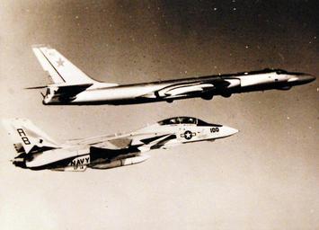 | Keywords: vehicle aircraft 428-GX-USN 1168752: A Navy F-14 “Tomcat” fighter aircraft escorts a Soviet TU-16 “Badger” reconnaissance bomber that attempted to penetrate the North Atlantic Treaty Organization defense to obtain data during the NATO exercise, Operation Teamwork. Photographed received January 1970. Official U.S. Navy photograph, now in the collections of the National Archives. (2016/07/19). 428-GX-USN 1168752: A Navy F-14 “Tomcat” fighter aircraft escorts a Soviet TU-16 “Badger” reconnaissance bomber that attempted to penetrate the North Atlantic Treaty Organization defense to obtain data during the NATO exercise, Operation Teamwork. Photographed received January 1970. Official U.S. Navy photograph, now in the collections of the National Archives. (2016/07/19). |