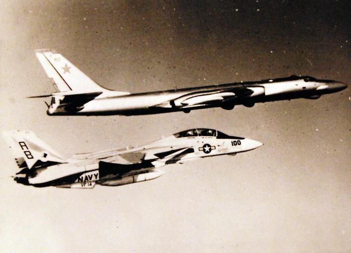 Keywords: vehicle aircraft 428-GX-USN 1168752: A Navy F-14 “Tomcat” fighter aircraft escorts a Soviet TU-16 “Badger” reconnaissance bomber that attempted to penetrate the North Atlantic Treaty Organization defense to obtain data during the NATO exercise, Operation Teamwork. Photographed received January 1970. Official U.S. Navy photograph, now in the collections of the National Archives. (2016/07/19). 428-GX-USN 1168752: A Navy F-14 “Tomcat” fighter aircraft escorts a Soviet TU-16 “Badger” reconnaissance bomber that attempted to penetrate the North Atlantic Treaty Organization defense to obtain data during the NATO exercise, Operation Teamwork. Photographed received January 1970. Official U.S. Navy photograph, now in the collections of the National Archives. (2016/07/19). |