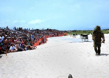 | Keywords: 43rd annual Underwater Demolition Team 120721-N-AT856-201.jpg en A Navy SEAL sniper waves to the crowd after showing his hidden position during a capabilities exercise at Joint Expeditionary Base Little Creek-Fort Story during the 43rd annual Underwater Demolition Team-Sea Air and Land SEAL East Coast Reunion The annual reunion started in 1969 and has expanded into a weekend of events contests and a SEAL capabilities exercise U S Navy photo by Mass Communication Specialist 2nd Class William S Parker/Released 2012-07-21 Petty Officer 2nd Class William Parker https //www dvidshub net/image/630873 120721-N-AT856-201 2012-07-24 03 49 VIRGINIA BEACH VA US PD-USGov-Military-Navy Joint Expeditionary Base Little Creek-Fort Story Images from DoD uploaded by Fæ |