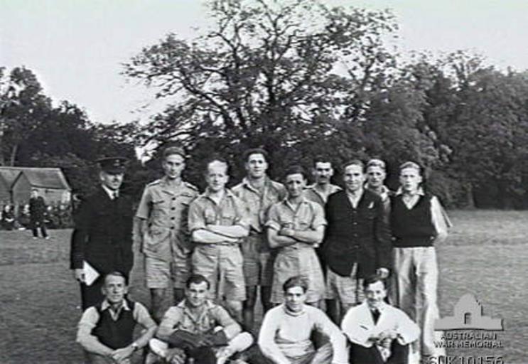 | Keywords: 458 Squadron RAAF personnel 1942 AWM SUK10156.jpg AWM caption Yorkshire England C 1942-02 Group portrait of members of No 458 Squadron RAAF who played in a cricket match against the RAF personnel on Station at Holme-on-Spalding Moor <br> Left to right standing Flying Officer FO Wharton Squadron Leader Sergeaunt Sergeant Sgt J Munday Sgt Hart Pilot Officer PO Gengos Flight Sergeant Kobelke Sgt W Sharp PO Jackson Sgt Bell Sitting Sgt Saggers Wing Commander Johnson FO Campbell unidentified unidentified SUK10156 circa February 1942 not stated Copyright expired - public domain PD-AustraliaGov RAF Holme-on-Spalding Moor No 458 Squadron RAAF World War II people of the Royal Australian Air Force World War II forces of Australia in the United Kingdom World War II forces recreation |