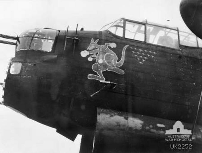 | Keywords: 463 Squadron RAAF Lancaster nose art Waddington Dec 1944 AWM UK2252.jpg AWM caption Lincolnshire England 1944-12-06 X for X-ray a Lancaster bomber aircraft of No 463 Squadron RAAF at RAF Station Waddington with twenty five operations recorded sporting a fighting kangaroo with a fighting joey in its pouch UK2252 1944-12-06 not stated Copyright expired - public domain PD-AustraliaGov Nose art on Avro Lancaster No 463 Squadron RAAF RAF Waddington Avro Lancaster in Australian service | ||||