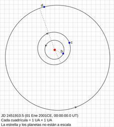 | Keywords: 47UMaOrbits es.svg en Plot of the orbits of the 47 Ursae Majoris system Orbit data taken from Gregory Fischer 2010 MNRAS preprint DOI 10 1111/j 1365-2966 2009 16233 A Bayesian periodogram finds evidence for three planets in 47 Ursae Majoris The orbits are plotted under the assumption of coplanarity and that all planets revolve around the star in the same direction taken to be anticlockwise The direction towards Earth is upwards at some unknown angle into or out of the diagram Orbits are plotted so that the focus of each planet's orbit is at the centre-of-mass of the inner planets Uncertainties in the orbital parameters which are considerable for planet d are not displayed 47UMaOrbits svg 2011-01-22 23 26 UTC 47UMaOrbits svg Icalanise derivative work Furado <span class signature-talk >talk</span> Text in Spanish language Furado 47UMaOrbits svg 47 Ursae Majoris |