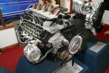 | Keywords: 4983 cc Holden 5000 (special performance) V8 engine (2015-08-29) 02.jpg 4983 cc w Holden V8 engine Holden 5000 special performance V8 engine Photographed at the National Holden Motor Museum Echuca Victoria Australia <br /> ;Specifications Bore 101 6 mm in on Stroke 76 8 mm in on Compression 8 4 1 Power 180 kW hp on at 5200 rpm Torque 380 Nm lbft on at 4000 rpm ;Features Ram tuned inlet manifold with High volumetric efficiency in the upper speed range Inserted bell mouthed ram tubes Large volume plenum chamber Dual throttle bodies Primary 64 mm in on diameter Secondary large 80 mm in on diameter for unrestricted air flow Four-bolt main bearing caps Cylinder block internal stiffening ribs Low inertia flywheel Multi-point fuel injection High-rise increased flow inlet port Free-flow reduced length exhaust ports Centralised spark plug reduction Electronic ignition 2015-08-29 own OSX -36 120169 144 745276 OSX Photographs by OSX Holden V8 engine National Holden Motor Museum |