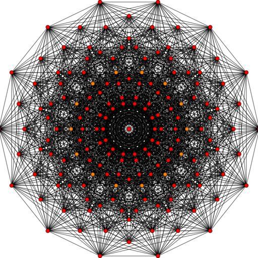 | Keywords: 4 21 polytope B7 Petrie.svg Gosset 4_21 polytope as orthogonal projection graph in B7 Petrie polygon basis orange vertices are doubled<br/> Projection basis of 7-cube v1 0 1189 0 3333 0 4816 0 5345 0 4816 0 3333 0 1189 v2 -0 5211 -0 4179 -0 2319 0 0000 0 2319 0 4179 0 5211 I Tom Ruen talk created this work entirely by myself 00 09 25 February 2010 UTC Tom Ruen talk Tomruen original upload log en wikipedia Sreejithk2000 CommonsHelper page en wikipedia 4_21_polytope_B7_Petrie svg 2010-02-25 00 09 Tomruen 800×800× 418852 bytes <nowiki> Gosset 4_21 polytope as orthogonal projection graph in B7 Petrie polygon basis I ~~~ created this work entirely by myself ~~~~~ ~~~ p</nowiki> Set of colored Coxeter plane graphs; many vertices |