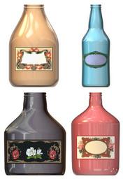 Keywords: bottle glass jar jug decanter container beer wine perfume liquer beverage label flower floral sticker advertisement ad design vintage antique victorian decorative scrapbook elements indoor white background 3D Elements 3D Elements