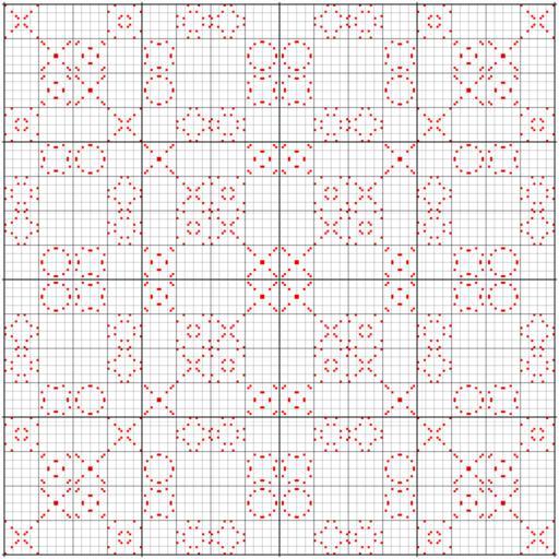 | Keywords: 4-ary Boolean functions; matrix wec E0.svg Walsh equivalence class E0 of 4-ary Boolean functions<br> The functions are represented as red squares in a 256×256 matrix organized like a 16-cube Hasse diagram Inkscape-hand a -Boolean Bin2svg own 2012 Mate2code 4-ary Boolean functions; matrix wec |