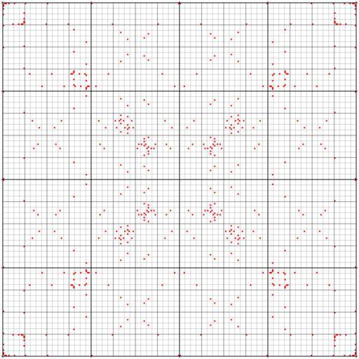 | Keywords: 4-ary Boolean functions; matrix ggbec 1.svg One of 39 ggbec<nowiki>s</nowiki> of 4-ary Boolean functions<br> The functions are represented as red squares in a 256×256 matrix organized like a 16-cube Hasse diagram Inkscape-hand a -Boolean Bin2svg own 2012 Lipedia 4-ary Boolean functions; matrix ggbec |