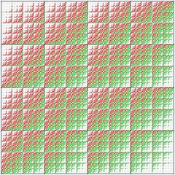 | Keywords: 4-ary Boolean functions; matrix weight 7, 9.svg 4-ary Boolean functions with Hamming weight 7 red and 9 green in a 256×256 matrix organized like a 16-cube Hasse diagram Inkscape-hand a -Boolean Bin2svg own 2012 Mate2code 4-ary Boolean functions; matrix weight |
