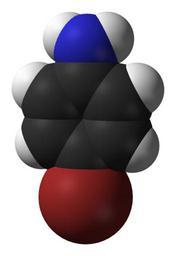MAKE A MEME View Large Image 4-bromoaniline-from-xtal-2003-3D-vdW.png Space-filling model of the 4-bromoaniline molecule C<sub>6</sub>H<sub>6</sub>BrN from the crystal structure Colour code Carbon C black Hydrogen H white Nitrogen N blue Bromine Br brown Crystal ...