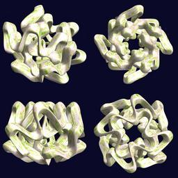 | Keywords: mathematica 3d cg parametricplot3d texture torus 輪環 りんかん ドーナツ どーなつ 六芒星 ろくぼうせい 六光星 ろくこうせい 六稜星 ろくりょうせい code program algorithm コード プログラム アルゴリズム hexagram geometric sculpture geometricsculpture shape geometry sculpture mapping テクスチャ マッピング 模様 もよう abstract 抽象 ちゅうしょう アブストラクト design pattern デザイン パターン graphic グラフィック グラフィクス structure 意匠 構造 symmetry 対称性 たいしょうせい シンメトリー 対称 たいしょう algorithm コード black background indoor blossom plant a = 6; (* center hole size of a torus *) b = 6; (* hexa-torus *) c = 2; (* distance from the center of rotation *) d = 4; (* number of torus *) h = 2; (* height of a torus *) SetOptions[ParametricPlot3D, PlotRange -> Full, Mesh -> None, Boxed -> False, Axes -> False, PlotPoints -> 400, ImageSize -> 1600, Background -> RGBColor[{10, 10, 40}/255], PlotStyle -> Directive[Specularity[White, 30], Texture[Import["D:/tmp/864.jpg"]]], TextureCoordinateFunction -> ({#4, #5 2 Pi} &), Lighting -> "Neutral"]; f[v_] := Sin[2 Sin[Sin[Sin[v]]]]; x = (a - Cos[t] - Sin[b s]) Cos[s + Pi/(2 b)] + c; y = (a - Cos[t] - Sin[b s]) Sin[s + Pi/(2 b)] + c; z = (f[t] - h f[b s]) + c; rot = Table[{x, y, z}.RotationMatrix[2 i Pi/d, {0, 1, 1}], {i, d}]; ParametricPlot3D[rot, {t, 0, 2 Pi}, {s, 0, 2 Pi}] (*--- The Texture *) a = 6; (* center hole size of a torus *) b = 6; (* hexa-torus *) c = 2; (* distance from the center of rotation *) d = 4; (* number of torus *) h = 2; (* height of a torus *) SetOptions[ParametricPlot3D, PlotRange -> Full, Mesh -> None, Boxed -> False, Axes -> False, PlotPoints -> 400, ImageSize -> 1600, Background -> RGBColor[{10, 10, 40}/255], PlotStyle -> Directive[Specularity[White, 30], Texture[Import["D:/tmp/864.jpg"]]], TextureCoordinateFunction -> ({#4, #5 2 Pi} &), Lighting -> "Neutral"]; f[v_] := Sin[2 Sin[Sin[Sin[v]]]]; x = (a - Cos[t] - Sin[b s]) Cos[s + Pi/(2 b)] + c; y = (a - Cos[t] - Sin[b s]) Sin[s + Pi/(2 b)] + c; z = (f[t] - h f[b s]) + c; rot = Table[{x, y, z}.RotationMatrix[2 i Pi/d, {0, 1, 1}], {i, d}]; ParametricPlot3D[rot, {t, 0, 2 Pi}, {s, 0, 2 Pi}] (*--- The Texture *) |