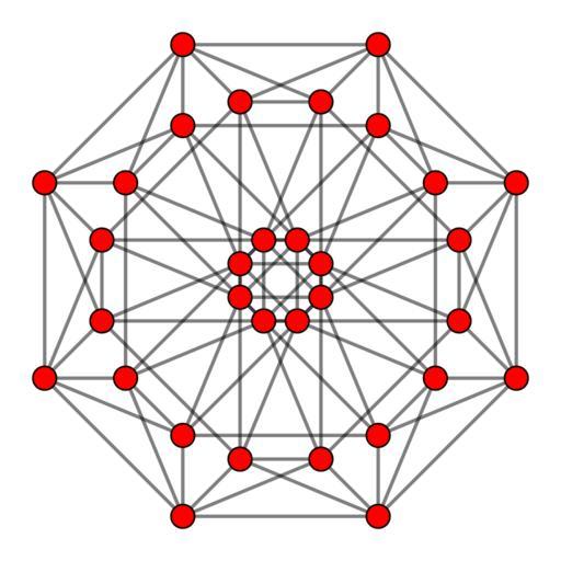 Keywords: 4-cube t1.svg en Tesseract// en 16-cell family graph in B4 en Coxeter plane own 10/9/10 self Rectified 8-cell; Coxeter plane graphs Set of colored Coxeter plane graphs; 32 vertices
