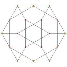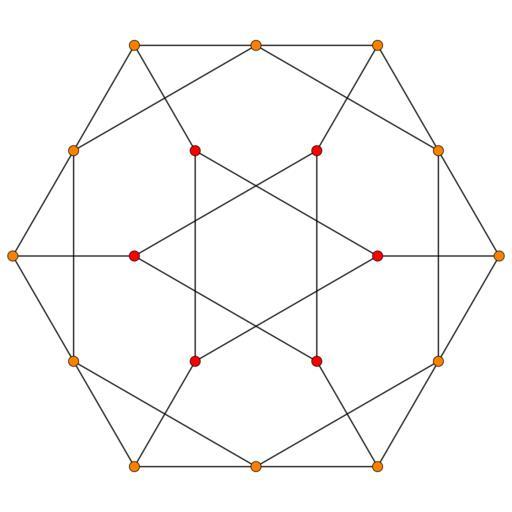 Keywords: 4-simplex t12 A2.svg en en 4-simplex family graph in A2 en Coxeter plane own Tomruen Bitruncated 5-cell; Coxeter plane graphs 5-cell family; Coxeter plane graphs; A2 Set of colored Coxeter plane graphs; 18 vertices
