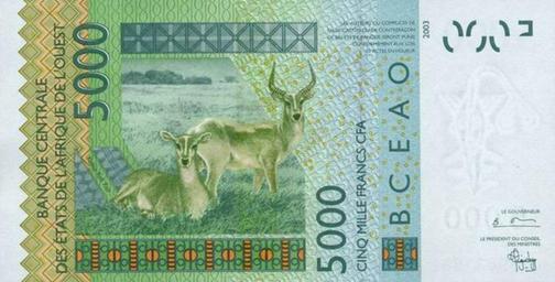 | Keywords: 5000 frank cfa UEMOA b.jpg ru Ф анк КФА ВСЕАО Купю а номиналом в 5000 XOF еве с обо отная сто она 2009-10-31 http //www moneyball info/71433-obrazcy-kupjur-i-monet-raznykh-stran-frank-kfa html Западноаф иканский экономический и валютный союз ЗАЭВС Custom license marker 2012 07 19 PD-Namibia Banknotes of the West African monetary union Banknotes with a face value of 5000 |