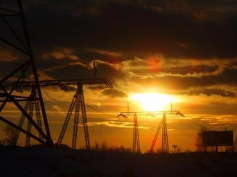 Keywords: 500 kV sunset.jpg en 500 kV AC power line in December sunset own Uni Taz 2007-12-15 55 53 52 N 37 38 48 9 E Pylons in Russia