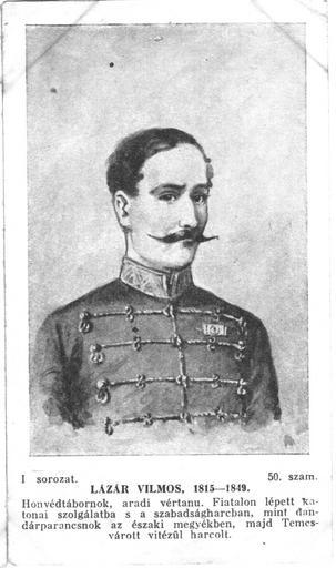 | Keywords: 50. Lázár Vilmos.jpg hu A felvétel szkennelés 2012 június 7 én készült A képeslapsorozat korábbi tulajdonosa Bálint János Ócsa volt Az I sor 1 sz 1 sorozat 100 szám jelzetű képeslapok a 101 jelzetű füst albumot töltötték meg A képeslap sorozat képeit az 1920 as években adták ki Az ismeretlen szerző halála óta több mint 70 év telt el A képeslapok hátoldalán ex libris A sorozat képei 1 sz Gróf Széchenyi István 1791 1860 2 sz Deák Ferenc 1803 1876 2 sz 3 sz 4 sz 5 sz 6 sz 7 sz Felsőbükki Nagy Pál 1777 1857 8 sz Báró Eötvös József 1813 1871 9 sz Kossuth Lajos 1802 1894 10 sz Petőfi Sándor 1823 1849 11 sz Liszt Ferenc 1811 1886 12 sz Batthányy Lajos gróf 1806 1849 13 sz II Lajos 1506 1526 14 sz Munkácsy Mihály 1844 1900 15 sz Tisza Kálmán gróf 1830 1902 16 sz Mátyás király 1440 1490 17 sz Arany János 1817 1882 18 sz Tisza István gróf 1865 1918 19 sz Kölcsey Ferenc 1790 1838 20 sz Szinyei Merse Pál 1845 1920 21 sz Jókai Mór 1825 1904 22 sz Mikszáth Kálmán 1849 1910 23 sz Vörösmarty Mihály 1800 1855 24 sz Fadrusz János 1858 1903 25 sz Árpád a Honalapító 26 sz Szent István 975 -1038 27 sz Szent László 1040 - 1095 28 sz Könyves Kálmán 1070 1116 29 sz II Endre 1205 1235 30 sz IV Béla 1206 1270 31 sz Nagy Lajos 32 sz Hunyadi János 33 sz II Rákóczi Ferenc 34 sz Vak Bottyán 35 sz III Károly 36 sz II József 37 sz Madách Imre 38 sz Katona József 39 sz Csokonai Vitéz Mihály 40 sz Lotz Károly 41 sz Pöltenberg Ernő 42 sz Török Ignác 43 sz 44 sz 45 sz 46 sz 47 sz Aulich Lajos 48 sz Damjanich János 49 sz Dessewffy Arisztid 50 sz Lázár Vilmos 51 sz Kiss Ernő 52 sz Schweidel József 53 sz Vécsey Károly 54 sz Táncsics Mihály 55 sz Tompa Mihály 56 sz Rottenbiller Lipót 57 sz Szent Gellért 58 sz Szent Imre 59 sz Kapisztrán János 60 sz Kinizsi Pál 61 sz Tomori Pál 62 sz Zrinyi Miklós 63 sz Gábor Áron 64 sz Bem József 65 sz Bocskay István 66 sz Bethlen Gábor 67 sz József nádor 68 sz Kisfaludy Károly 69 sz Berzsenyi Dániel 70 sz Fáy András 71 sz Semmelweis Ignác 72 sz Egressy Gábor 73 sz Erkel Ferenc 74 sz Szilágyi Dezső 75 sz báró Bánffy Dezső 76 sz Ujházi Ede 77 sz Baross Gábor 78 sz id Wekerle Sándor 79 sz Justh Gyula 80 sz Prohászka Ottokár 81 sz Reményi Ede 82 sz Vámbéry Ármin 83 sz Rákosi Jenő 84 sz Eötvös Károly 85 sz Benczur Gyula 86 sz Blaha Lujza 87 sz Jászai Mari 88 sz Gárdonyi Géza 89 sz Ady Endre 90 sz Gyóni Géza 91 sz Báthori Zsigmond 92 sz Pázmány Péter 93 sz Kisfaludy Sándor 94 sz Goldmark Károly 95 sz Ferenc József 96 sz Erzsébet 97 sz Hermann Ottó 98 sz Lechner Ödön 99 sz Pósa Lajos 100 sz Móra Ferenc 101 jelzet füst album A felvétel és az egész sorozat képei megjelentek Creative Commons alatt a Metapolisz DVD sorozatban 2012-06-07 saját tulajdon author Custom license marker 2012 06 07 PD-old Metapolisz Uploaded with UploadWizard Vilmos Lázár |