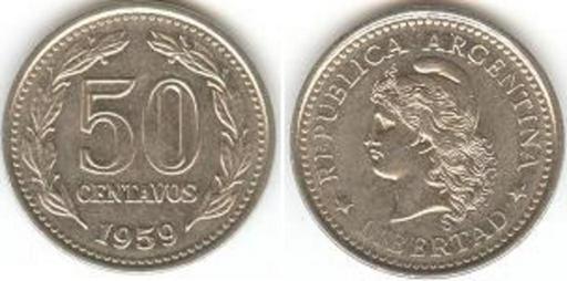 Keywords: 50cts59.PNG es Moneda de cincuenta centavos de 1959 Argentine 50 centavos 1/100 of a peso Argentine coin Argentine Central Bank photograph by Turkmenistan 1956 Coin PD-AR-Anonymous <br/>Photograph Coins of Argentina
