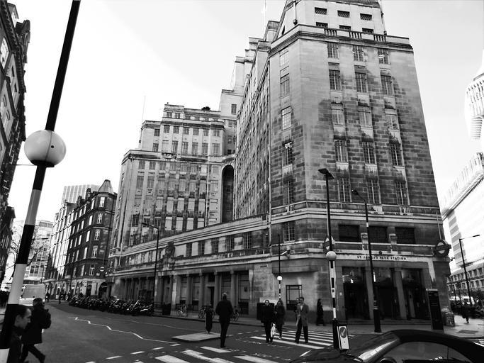 | Keywords: blackandwhite monochrome outdoor architecture black and white Faced with Portland stone and covering a site with an irregular footprint, the upper office floors of the building are on a cruciform plan, stepping back towards the central clock tower at the top. The cruciform design afforded the optimum level of natural light to the offices. The ground floor now contains a shopping arcade and many art deco details. Previously the ground floor was also given over to London Transport offices, including a travel information centre, cash office and a library. The whole building straddles St. James's Park tube station, the east and west wings being immediately above the railway tunnel. When finished it was the tallest steel-framed office building in London,[3] until another Holden building, the University of London's Senate House (based on similar designs and materials), took the accolade. On each elevation, the pediment above the sixth floor is decorated with a relief, collectively known as 'the four winds', although the four points of the compass are repeated twice for a total of eight reliefs. Each relief was carved by an avant-garde sculptor of the day. Halfway along the north and east facades are a matched pair of sculptures, Day and Night by Jacob Epstein. The modernism and graphic nakedness of these sculptures created public outrage on their unveiling. Newspapers started a campaign to have the statues removed and one company director, Lord Colwyn even offered to pay the cost.[4] Frank Pick, the managing director of the UERL at the time, took overall responsibility and offered his resignation over the scandal. In the end, Epstein agreed to remove 1.5 inches from the penis of the smaller figure on Day and ultimately the furore died down.[4][5] The function suite on the 10th floor of the building was formerly set up as a dining room for the chairman and senior executives. At this level there are also two roof gardens, one of which was dedicated to the wife of a former managing director in recognition of her enthusiasm to encourage this early form of environmental work. The building, first listed as Grade II in 1970, was re-graded to Grade I in 2011.[6] In 2013, it was announced that 55 Broadway will be converted into luxury apartments once London Underground move operations from the building in 2015.[7] In May 2014, it was announced that the architects, TateHindle will lead the redevelopment planning, with applications to expected to be filed in the autumn.[8] Faced with Portland stone and covering a site with an irregular footprint, the upper office floors of the building are on a cruciform plan, stepping back towards the central clock tower at the top. The cruciform design afforded the optimum level of natural light to the offices. The ground floor now contains a shopping arcade and many art deco details. Previously the ground floor was also given over to London Transport offices, including a travel information centre, cash office and a library. The whole building straddles St. James's Park tube station, the east and west wings being immediately above the railway tunnel. When finished it was the tallest steel-framed office building in London,[3] until another Holden building, the University of London's Senate House (based on similar designs and materials), took the accolade. On each elevation, the pediment above the sixth floor is decorated with a relief, collectively known as 'the four winds', although the four points of the compass are repeated twice for a total of eight reliefs. Each relief was carved by an avant-garde sculptor of the day. Halfway along the north and east facades are a matched pair of sculptures, Day and Night by Jacob Epstein. The modernism and graphic nakedness of these sculptures created public outrage on their unveiling. Newspapers started a campaign to have the statues removed and one company director, Lord Colwyn even offered to pay the cost.[4] Frank Pick, the managing director of the UERL at the time, took overall responsibility and offered his resignation over the scandal. In the end, Epstein agreed to remove 1.5 inches from the penis of the smaller figure on Day and ultimately the furore died down.[4][5] The function suite on the 10th floor of the building was formerly set up as a dining room for the chairman and senior executives. At this level there are also two roof gardens, one of which was dedicated to the wife of a former managing director in recognition of her enthusiasm to encourage this early form of environmental work. The building, first listed as Grade II in 1970, was re-graded to Grade I in 2011.[6] In 2013, it was announced that 55 Broadway will be converted into luxury apartments once London Underground move operations from the building in 2015.[7] In May 2014, it was announced that the architects, TateHindle will lead the redevelopment planning, with applications to expected to be filed in the autumn.[8] |