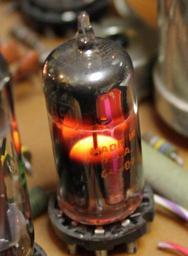 Keywords: 5651RegulatorTubeInOperation.jpg voltage-regulator tube in operation in an old piece of electronic equipment Glimmstabilisatorröhre 5651 in Betrieb Own VA7IS 2011-01-14 Voltage regulator tubes Thyratrons