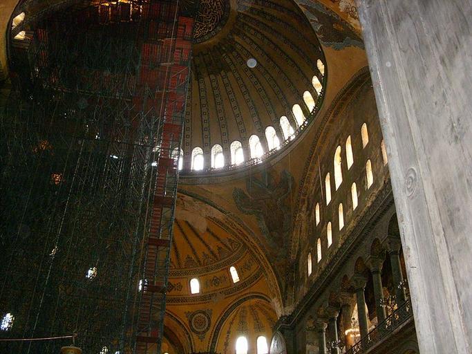 Keywords: 574IstanbulSSofia.JPG it Istanbul - Interno della Basilica di S Sofia own MarkusMark 2009-04 Dome of Hagia Sophia Seraphims in Hagia Sophia Scaffolding in Hagia Sophia
