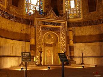 Keywords: 581IstanbulSSofia.JPG it Istanbul - Interno della Basilica di S Sofia Mihrab own MarkusMark 2009-04 Mihrab in Hagia Sophia