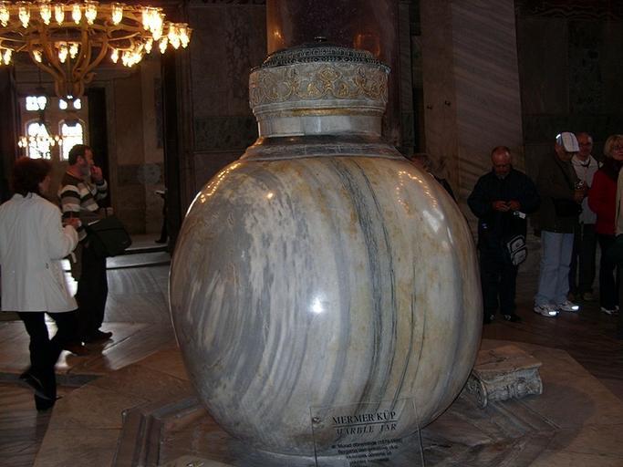 Keywords: 587IstanbulSSofia.JPG it Istanbul - Interno della Basilica di S Sofia Urna in alabastro own MarkusMark 2009-04 Marble jar Hagia Sophia Ancient Roman alabaster cinerary urns