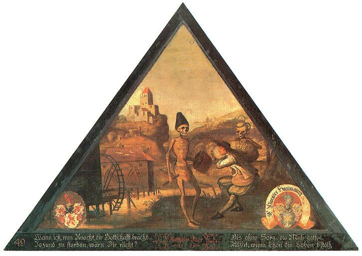 | Keywords: 58 Der Muellerknecht.jpg de Spreuerbrücke Tafel 58 Der Müllerknecht en Spreuerbrucke Panel 58 The miller servant Wann ich min Knecht dir Bottschafft brächt<br /> Jezund zu sterben wär's dir rächt <br /> bis ohne Sorg die Mühli goth -<br /> allziit wann schon din Leben b'stoth 1626 1635 Katalog der Brückenbilder von Heinz Horat Aus dem Buch Die Spreuerbrücke in Luzern Ein barocker Totentanz von europäischer Bedeutung Raeber Verlag Luzern 1996 Kaspar Meglinger 1595-1670 other versions PD-old-100-1923 Paintings of the Spreuerbrucke Uploaded with UploadWizard |