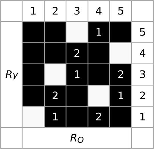 | Keywords: Атласное переплетение 5.2.png ru Атласное пе еплетение 5/2 own Quicktotal 2012-12-29 wikitable style background black center style background white 1 2 3 4 5 center 5 style background white R<sub>У</sub> background f9f9f9 color white 1 background white 5 center color white 2 background f9f9f9 background white 4 center background f9f9f9 color white 1 color white 2 background white 3 center color white 2 background f9f9f9 color white 1 background white 2 center background f9f9f9 color white 1 color white 2 background white 1 center style background white 5 R<sub>О</sub> <source lang html5 > wikitable style background black center style background white 1 2 3 4 5 center 5 style background white R<sub>У</sub> background f9f9f9 color white 1 background white 5 center color white 2 background f9f9f9 background white 4 center background f9f9f9 color white 1 color white 2 background white 3 center color white 2 background f9f9f9 color white 1 background white 2 center background f9f9f9 color white 1 color white 2 background white 1 center style background white 5 R<sub>О</sub> </source> Weaving patterns Cc-zero |