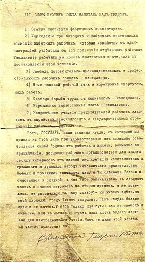 Keywords: Петиция-5.jpg ru Пятая ст аница Петиции абочих и жителей Санкт-Пете бу га 9 янва я 1905 года Д С Све чков а за е еволюции Л Госиздат 1926 г Гео гий Аполлонович Гапон 1870-1906 1905-01-08 Bloody Sunday 1905 PD-old