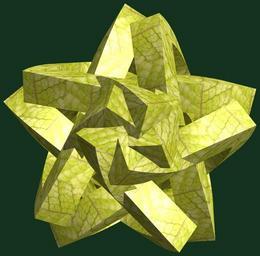 | Keywords: mathematica 3d cg parametricplot3d texture torus code program algorithm プログラム コード アルゴリズム 輪環 りんかん ドーナツ どーなつ 五芒星 ごぼうせい geometric sculpture geometricsculpture shape geometry sculpture mapping テクスチャ マッピング 模様 もよう abstract 抽象 ちゅうしょう アブストラクト design pattern デザイン パターン graphic グラフィック グラフィクス structure 意匠 構造 symmetry 対称性 たいしょうせい シンメトリー 対称 たいしょう plant leaf foliage black background tree a = 4; (* center hole size *) b = 5; (* penta-torus *) c = -4; (* distance from the center of rotation *) d = 5; (* number of torus *) h = 1; (* height of a torus *) SetOptions[ParametricPlot3D, PlotRange -> Full, Mesh -> None, Boxed -> False, Axes -> False, PlotPoints -> 400, ImageSize -> 3000, Background -> RGBColor[{20, 50, 30}/255], PlotStyle -> Directive[Specularity[White, 30], Texture[Import["D:/tmp/71.jpg"]]], TextureCoordinateFunction -> ({#4, #5 Pi} &), Lighting -> "Neutral"]; f[v_] := TriangleWave[{-1, 1}, v/(2 Pi)]; g[v_] := TriangleWave[{-1, 1}, v/(2 Pi) + 1/4]; x = (a - g[t] - f[b s]) Cos[s + Pi/(2 b)]; y = (a - g[t] - f[b s]) Sin[s + Pi/(2 b)]; z = (a - f[t] - h f[b s]) + c; rm = Table[{x, y, z}.RotationMatrix[2 i Pi/d, {1, 1, 0}], {i, d}]; ParametricPlot3D[rm, {t, 0, 2 Pi}, {s, 0, Pi}] (*--- The Texture *) a = 4; (* center hole size *) b = 5; (* penta-torus *) c = -4; (* distance from the center of rotation *) d = 5; (* number of torus *) h = 1; (* height of a torus *) SetOptions[ParametricPlot3D, PlotRange -> Full, Mesh -> None, Boxed -> False, Axes -> False, PlotPoints -> 400, ImageSize -> 3000, Background -> RGBColor[{20, 50, 30}/255], PlotStyle -> Directive[Specularity[White, 30], Texture[Import["D:/tmp/71.jpg"]]], TextureCoordinateFunction -> ({#4, #5 Pi} &), Lighting -> "Neutral"]; f[v_] := TriangleWave[{-1, 1}, v/(2 Pi)]; g[v_] := TriangleWave[{-1, 1}, v/(2 Pi) + 1/4]; x = (a - g[t] - f[b s]) Cos[s + Pi/(2 b)]; y = (a - g[t] - f[b s]) Sin[s + Pi/(2 b)]; z = (a - f[t] - h f[b s]) + c; rm = Table[{x, y, z}.RotationMatrix[2 i Pi/d, {1, 1, 0}], {i, d}]; ParametricPlot3D[rm, {t, 0, 2 Pi}, {s, 0, Pi}] (*--- The Texture *) |