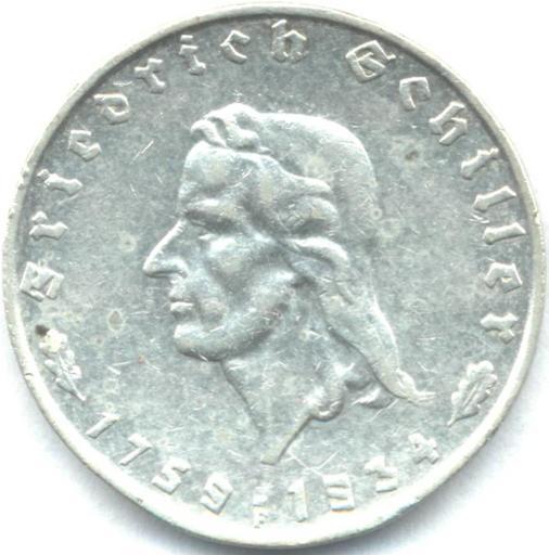 Keywords: 5 Mark Schiller obverse.jpg en 5 Mark Schiller obverse Coin from my collection Scan was made by me personally 2014-04-15 19 49 33 own Ibidem cc-zero Uploaded with UploadWizard Commemorative RM coins of the Third Reich 500 1934