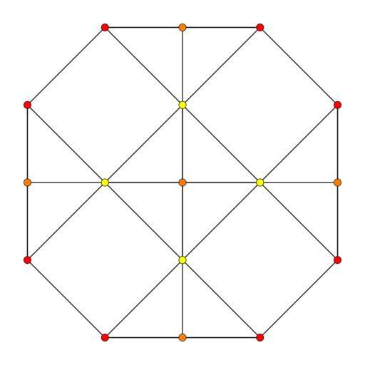 Keywords: 5-simplex t01 A3.svg en en 5-simplex family graph in A3 en Coxeter plane own Tomruen Set of colored Coxeter plane graphs; 17 vertices