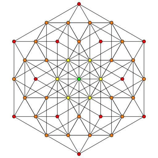 Keywords: 5-simplex t13.svg en en 5-simplex family polytope graph in A5 Coxeter plane own Tomruen Set of colored Coxeter plane graphs red orange yellow green vertices Simplex