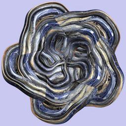 | Keywords: mathematica 3d cg parametricplot3d texture torus code program algorithm プログラム コード アルゴリズム 輪環 りんかん ドーナツ どーなつ トーラス とーらす mapping テクスチャ マッピング 模様 もよう abstract 抽象 ちゅうしょう アブストラクト design pattern デザイン パターン graphic グラフィック グラフィクス structure 意匠 構造 symmetry 対称性 たいしょうせい シンメトリー 対称 たいしょう drawing white background surreal a = 7; (* center hole size of a torus *) b1 = 3;(* the number of angles *) b2 = 6;(* the number of waves *) c = 3; (* distance from the center of rotation *) d = 5; (* the number of tori *) h1 = 3; (* width of a torus *) h2 = 1; (* width of a torus *) SetOptions[ParametricPlot3D, PlotRange -> Full, Mesh -> None, Boxed -> False, Axes -> None, PlotPoints -> 500, ImageSize -> 3000, Background -> RGBColor[{200, 200, 240}/255], PlotStyle -> Directive[Specularity[White, 70], Texture[Import["D:/tmp/94.jpg"]]], TextureCoordinateFunction -> ({#4, #5 Pi} &), Lighting -> "Neutral"]; f[v_] := Sin[2 Sin[Sin[Sin[v]]]]; x = (a - h1 Cos[t] + h2 f[b1 s]) Cos[s] + c; y = (a - h1 Cos[t] + h2 f[b1 s]) Sin[s] + c; z = f[b2 t]; rm = Table[{x, y, z}.RotationMatrix[2 i Pi/d, {0, 1, 2}], {i, d}]; ParametricPlot3D[rm, {t, 0, 2 Pi}, {s, 0, 2 Pi}] (*--- The Texture *) a = 7; (* center hole size of a torus *) b1 = 3;(* the number of angles *) b2 = 6;(* the number of waves *) c = 3; (* distance from the center of rotation *) d = 5; (* the number of tori *) h1 = 3; (* width of a torus *) h2 = 1; (* width of a torus *) SetOptions[ParametricPlot3D, PlotRange -> Full, Mesh -> None, Boxed -> False, Axes -> None, PlotPoints -> 500, ImageSize -> 3000, Background -> RGBColor[{200, 200, 240}/255], PlotStyle -> Directive[Specularity[White, 70], Texture[Import["D:/tmp/94.jpg"]]], TextureCoordinateFunction -> ({#4, #5 Pi} &), Lighting -> "Neutral"]; f[v_] := Sin[2 Sin[Sin[Sin[v]]]]; x = (a - h1 Cos[t] + h2 f[b1 s]) Cos[s] + c; y = (a - h1 Cos[t] + h2 f[b1 s]) Sin[s] + c; z = f[b2 t]; rm = Table[{x, y, z}.RotationMatrix[2 i Pi/d, {0, 1, 2}], {i, d}]; ParametricPlot3D[rm, {t, 0, 2 Pi}, {s, 0, 2 Pi}] (*--- The Texture *) |