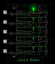 Keywords: Снимок модели 5B триггера Larry K. Baxter.JPG Снимок модели 5-ти битного т игге а Larry K Baxter'а из US Patent 3 764 919 Oct 9 1973 Filed Dec 22 1972 Fig 3 2010-06-17 own assumed Анд ей Куликов Flip-flops