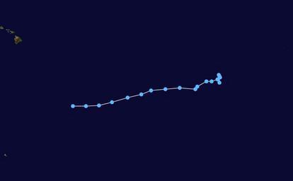 | Keywords: 5E 1989 track.png Track map of Tropical Depression Five-E of the 1989 Pacific hurricane season The points show the location of the storm at 6-hour intervals The colour represents the storm's maximum sustained wind speeds as classified in the Saffir-Simpson Hurricane Scale see below and the shape of the data points represent the nature of the storm according to the legend below User Nilfanion/Tc/T Created by Cyclonebiskit using Wikipedia WikiProject Tropical cyclones/Tracks The background image is from NASA Tracking data switch source from the National Hurricane Center <sup>http //www nhc noaa gov/pastall shtml</sup> from the Central Pacific Hurricane Center <sup>http //www prh noaa gov/cphc/summaries/</sup> from the Joint Typhoon Warning Center <sup>https //metocph nmci navy mil/jtwc/best_tracks/</sup> from the Japan Meteorological Agency <sup>http //www jma go jp/jma/jma-eng/jma-center/rsmc-hp-pub-eg/besttrack html</sup> from the National Hurricane Center <sup>http //www nhc noaa gov/pastall shtml and the Central Pacific Hurricane Center http //www prh noaa gov/cphc/summaries/</sup> from the Central Pacific Hurricane Center <sup>http //www prh noaa gov/cphc/summaries/ and the Joint Typhoon Warning Center https //metocph nmci navy mil/jtwc/best_tracks/</sup> from the w National Hurricane Center <sup>http //www nhc noaa gov/pastall shtml</sup> or the Joint Typhoon Warning Center <sup>https //metocph nmci navy mil/jtwc/best_tracks/</sup> 2009-08-31 Cyclonebiskit 1989 Pacific hurricane season Pacific hurricane tracks |
