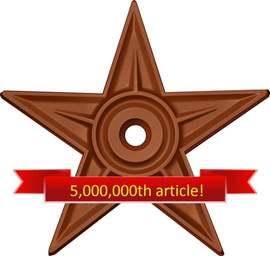 | Keywords: 5M article barnstar.png five million articles in Wikipedia 2015-11-01 File Original Barnstar png Mikael Häggström from original by SunirShah other versions Custom license marker 2015 11 01 SunirShah meta Wikimedia barnstars Uploaded with UploadWizard |