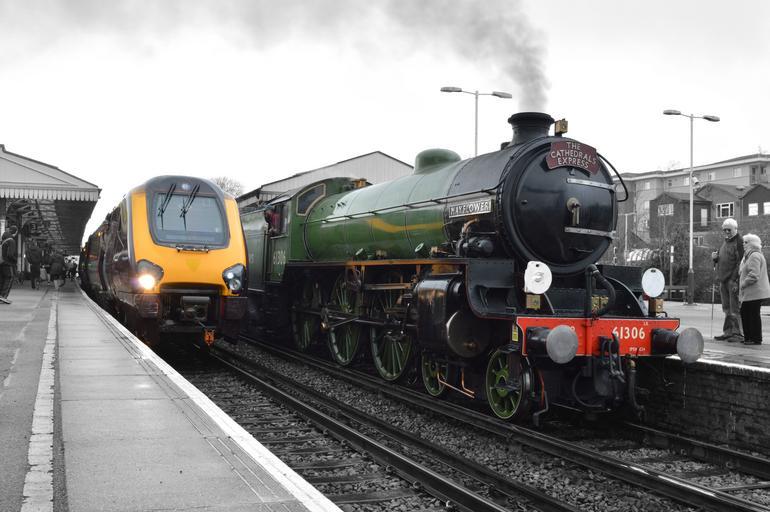 | Keywords: 61306 mayflower basingstoke cathedrals express valentines day voyager 220 cross country vehicle train locomotive railroad steam locomotive steam engine outdoor LNER B1 Class 61306 'Mayflower' heads the Cathedrals Express London Victoria-Brighton and return on Valentines Day 2015- Line-up at Basingstoke Platform 4, UP direction. LNER B1 Class 61306 'Mayflower' heads the Cathedrals Express London Victoria-Brighton and return on Valentines Day 2015- Line-up at Basingstoke Platform 4, UP direction. |