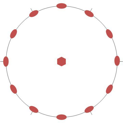 | Keywords: 622 point group.png en Stereographic representation of the symmetry point group 622 The 001 direction is perpendicular to the projection plane The rotation axes are represented in red The thin black ticks show the direction of the equivalent crystallographic axes a1 a2 and a3 fr Représentation stéréographique du groupe ponctuel de symétrie 622 La direction 001 est perpendiculaire au plan de projection Les axes de rotation sont représentés en rouge Les trait fins noirs montrent la direction des axes cristallographiques équivalents a1 a2 et a3 own Perditax 2011-06-06 Cc-zero Point groups |
