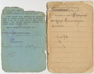 | Keywords: Ополченский билет № 6307 (1901 г.) Василия Веселаго (форзац и с. 3).jpg ru Ополченский билет 6307 1901 г Василия Веселаго фо зац и с 3 с подписью Пете гофского уездного воинского начальника подполковника Янушевского Александ а Ивановича Коллежский асессо ошибся не только в написании своей должности аССеСо вместо асессо военный билет выдан не в 1910 а в 1901 году 1901 Chelovechek с о игинала из собственного а хива Chelovechek from original in own archive Chelovechek de l'original en propre archive ru е указывается en Not credited PD-RusEmpire Uploaded with UploadWizard Vasily Veselago militia ticket |