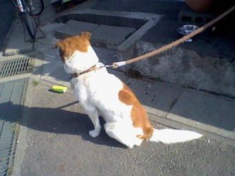 Keywords: ロード66.JPG ja え 犬 おれ Mixed-breed dogs Rear three-quarter views of dogs Dog walking in Japan Red and white dogs Grates