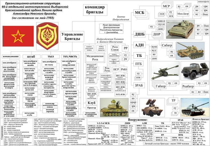 | Keywords: ОШС 66-й омсбр.jpg ru О ганизационно-Штатная Ст укту а 66-й омсб на май-1988 Собственная абота на основе данных взятых у Бешка ева Александ а Ивановича в статье Афганистан 66 омсб на сайте http //artofwar ru/b/beshkarew_a_i/66omsbr shtml и данных взятых на сайте 66-й омсб - http //66brigada ucoz org/ Отче чено в AutoCAD 2005 own Kalabaha1969 8 09 2011 Cc-zero Order of the Red Banner USSR Soviet Afghan War Military units and formations of the Soviet Union | ||||
