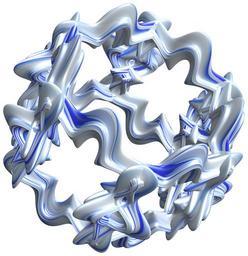 | Keywords: mathematica 3d cg parametricplot3d texture torus 輪環 りんかん ドーナツ どーなつ 八芒星 はちぼうせい program プログラム code コード algorithm コード アルゴリズム geometric sculpture geometricsculpture shape geometry sculpture mapping テクスチャ マッピング 模様 もよう design pattern デザイン パターン graphic グラフィック グラフィクス structure 意匠 構造 symmetry 対称性 たいしょうせい シンメトリー 対称 たいしょう algorithm white background indoor flower plant SetOptions[ParametricPlot3D, PlotRange -> Full, Mesh -> None, Boxed -> False, Axes -> None, PlotPoints -> 400, ImageSize -> 3000, PlotStyle -> Directive[Specularity[White, 30], Texture[Import["D:/tmp/863.jpg"]]], TextureCoordinateFunction -> ({#4 + #5, #5/Pi} &), Lighting -> "Neutral"]; a = 5; (* center hole size of a torus *) b = 8; (* octa-torus *) c = 7; (* distance from the center of rotation *) d = 6; (* number of torus *) g[v_] := Sum[Cos[(2 k - 1) v]/(2 k - 1), {k, 4}]; x = (a - g[t] - Sin[b s]) Cos[s + Pi/(2 b)] + c; y = Sin[t] + c; z = (a - g[t] - Sin[b s]) Sin[s + Pi/(2 b)] + c; rot = Table[{x, y, z}.RotationMatrix[2 i Pi/d, {1, 0, 1}], {i, d}]; ParametricPlot3D[rot, {t, 0, 2 Pi}, {s, 0, 2 Pi}] (*--- The Texture The g[] is a 4-partial sum of the Fourier series for Square wave. g[]は矩形波のフーリエ展開の最初の4項 *) SetOptions[ParametricPlot3D, PlotRange -> Full, Mesh -> None, Boxed -> False, Axes -> None, PlotPoints -> 400, ImageSize -> 3000, PlotStyle -> Directive[Specularity[White, 30], Texture[Import["D:/tmp/863.jpg"]]], TextureCoordinateFunction -> ({#4 + #5, #5/Pi} &), Lighting -> "Neutral"]; a = 5; (* center hole size of a torus *) b = 8; (* octa-torus *) c = 7; (* distance from the center of rotation *) d = 6; (* number of torus *) g[v_] := Sum[Cos[(2 k - 1) v]/(2 k - 1), {k, 4}]; x = (a - g[t] - Sin[b s]) Cos[s + Pi/(2 b)] + c; y = Sin[t] + c; z = (a - g[t] - Sin[b s]) Sin[s + Pi/(2 b)] + c; rot = Table[{x, y, z}.RotationMatrix[2 i Pi/d, {1, 0, 1}], {i, d}]; ParametricPlot3D[rot, {t, 0, 2 Pi}, {s, 0, 2 Pi}] (*--- The Texture The g[] is a 4-partial sum of the Fourier series for Square wave. g[]は矩形波のフーリエ展開の最初の4項 *) |