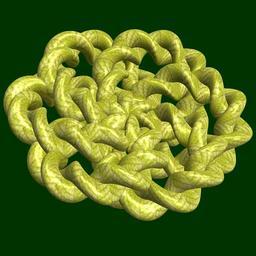 | Keywords: mathematica 3d cg parametricplot3d texture torus knot 輪環 りんかん ドーナツ どーなつ 結び むすび 捩れ よじれ プログラム コード code program algorithm コード アルゴリズム geometric sculpture geometricsculpture shape geometry sculpture mapping テクスチャ マッピング 模様 もよう abstract 抽象 ちゅうしょう アブストラクト design pattern デザイン パターン graphic グラフィック グラフィクス structure 意匠 構造 symmetry 対称性 たいしょうせい シンメトリー 対称 たいしょう algorithm organic pattern plant foliage black background SetOptions[ParametricPlot3D, PlotRange -> Full, Mesh -> None, Boxed -> False, Axes -> None, PlotPoints -> 300, ImageSize -> 3000, Background -> Darker[Green, 0.8], PlotStyle -> Directive[Specularity[White, 90], Texture[Import["D:/tmp/71.jpg"]]], TextureCoordinateFunction -> ({#4, #5 b Pi} &), Lighting -> "Neutral"]; a = 5; (* center hole size of a torus *) b = 9; (* number of cross *) c = 5; (* distance from the center of rotation *) d = 6; (* number of torus *) x = (a - Cos[t] + Sin[b s]) Cos[2 s] + c; y = (a - Cos[t] + Sin[b s]) Sin[2 s] + c; z = Cos[b s] + Sin[t] + c; rot = Table[{x, y, z}.RotationMatrix[2 i Pi/d, {0, 1, 3}], {i, d}]; ParametricPlot3D[rot, {t, 0, 2 Pi}, {s, 0, 2 Pi}] (* --- The Texture is this: www.flickr.com/photos/tanaka_juuyoh/5239255695/ *) SetOptions[ParametricPlot3D, PlotRange -> Full, Mesh -> None, Boxed -> False, Axes -> None, PlotPoints -> 300, ImageSize -> 3000, Background -> Darker[Green, 0.8], PlotStyle -> Directive[Specularity[White, 90], Texture[Import["D:/tmp/71.jpg"]]], TextureCoordinateFunction -> ({#4, #5 b Pi} &), Lighting -> "Neutral"]; a = 5; (* center hole size of a torus *) b = 9; (* number of cross *) c = 5; (* distance from the center of rotation *) d = 6; (* number of torus *) x = (a - Cos[t] + Sin[b s]) Cos[2 s] + c; y = (a - Cos[t] + Sin[b s]) Sin[2 s] + c; z = Cos[b s] + Sin[t] + c; rot = Table[{x, y, z}.RotationMatrix[2 i Pi/d, {0, 1, 3}], {i, d}]; ParametricPlot3D[rot, {t, 0, 2 Pi}, {s, 0, 2 Pi}] (* --- The Texture is this: www.flickr.com/photos/tanaka_juuyoh/5239255695/ *) |