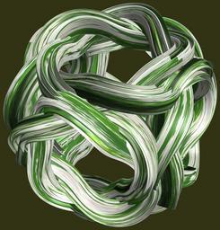 | Keywords: mathematica 3d cg parametricplot3d texture torus code program algorithm プログラム コード アルゴリズム 輪環 りんかん ドーナツ どーなつ トーラス とーらす knot 結び目 むすびめ mapping テクスチャ マッピング 模様 もよう design pattern デザイン パターン graphic グラフィック グラフィクス structure 意匠 構造 symmetry 対称性 たいしょうせい シンメトリー 対称 たいしょう drawing surreal indoor black background sketch a = 6; (* center hole size of a torus *) b1 = 5; (* the number of angles *) b2 = 4; (* the number of waves *) b3 = 2; (* the number of knots *) c = 7; (* distance from the center of rotation *) d = 6; (* the number of tori *) h1 = 1; (* width of a torus *) h2 = 1; (* width of a torus *) SetOptions[ParametricPlot3D, PlotRange -> Full, Mesh -> None, Boxed -> False, Axes -> None, PlotPoints -> 500, ImageSize -> 3000, Background -> RGBColor[{50, 50, 20}/255], PlotStyle -> Directive[Specularity[White, 50], Texture[Import["D:/tmp/91.jpg"]]], TextureCoordinateFunction -> ({#4, #5 /Pi} &), Lighting -> "Neutral"]; x = (a - h1 Cos[t] + h2 Sin[b1 s]) Cos[b3 s]; y = (a - h1 Cos[t] + h2 Sin[b1 s]) Sin[b3 s]; z = Cos[b1 s] + Sin[b2 t] + c; vc = {{0, 0, 1}, {0, 0, -1}, {0, 1, 0}, {0, -1, 0}, {1, 0, 0}, {-1, 0, 0}}; rm = Table[{x, y, z}.RotationMatrix[{{0, 0, 1}, vc[[i]]}], {i, d}]; ParametricPlot3D[rm, {t, 0, 2 Pi}, {s, 0, 2 Pi}] (*--- The Texture *) a = 6; (* center hole size of a torus *) b1 = 5; (* the number of angles *) b2 = 4; (* the number of waves *) b3 = 2; (* the number of knots *) c = 7; (* distance from the center of rotation *) d = 6; (* the number of tori *) h1 = 1; (* width of a torus *) h2 = 1; (* width of a torus *) SetOptions[ParametricPlot3D, PlotRange -> Full, Mesh -> None, Boxed -> False, Axes -> None, PlotPoints -> 500, ImageSize -> 3000, Background -> RGBColor[{50, 50, 20}/255], PlotStyle -> Directive[Specularity[White, 50], Texture[Import["D:/tmp/91.jpg"]]], TextureCoordinateFunction -> ({#4, #5 /Pi} &), Lighting -> "Neutral"]; x = (a - h1 Cos[t] + h2 Sin[b1 s]) Cos[b3 s]; y = (a - h1 Cos[t] + h2 Sin[b1 s]) Sin[b3 s]; z = Cos[b1 s] + Sin[b2 t] + c; vc = {{0, 0, 1}, {0, 0, -1}, {0, 1, 0}, {0, -1, 0}, {1, 0, 0}, {-1, 0, 0}}; rm = Table[{x, y, z}.RotationMatrix[{{0, 0, 1}, vc[[i]]}], {i, d}]; ParametricPlot3D[rm, {t, 0, 2 Pi}, {s, 0, 2 Pi}] (*--- The Texture *) |