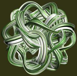 | Keywords: mathematica 3d cg parametricplot3d texture torus code program algorithm プログラム コード アルゴリズム 輪環 りんかん ドーナツ どーなつ トーラス とーらす knot 結び目 むすびめ mapping テクスチャ マッピング 模様 もよう design pattern デザイン パターン graphic グラフィック グラフィクス structure 意匠 構造 symmetry 対称性 たいしょうせい シンメトリー 対称 たいしょう indoor drawing tangle a = 12; (* center hole size of a torus *) b1 = 5; (* the number of angles *) b2 = 4; (* the number of waves *) b3 = 2; (* the number of knots *) c = 16; (* distance from the center of rotation *) d = 6; (* the number of tori *) h1 = 3; (* width of a torus *) h2 = 2; (* width of a torus *) h3 = 5; (* height of cross *) SetOptions[ParametricPlot3D, PlotRange -> Full, Mesh -> None, Boxed -> False, Axes -> None, PlotPoints -> 500, ImageSize -> 3000, Background -> RGBColor[{50, 50, 20}/255], PlotStyle -> Directive[Specularity[White, 50], Texture[Import["D:/tmp/911.jpg"]]], TextureCoordinateFunction -> ({#4, #5 /Pi} &), Lighting -> "Neutral"]; x = (a - h1 Cos[t] + h2 Sin[b1 s]) Cos[b3 s]; y = (a - h1 Cos[t] + h2 Sin[b1 s]) Sin[b3 s]; z = h3 Cos[b1 s] + Sin[b2 t] + c; vc = {{0, 0, 1}, {0, 0, -1}, {0, 1, 0}, {0, -1, 0}, {1, 0, 0}, {-1, 0, 0}}; rm = Table[{x, y, z}.RotationMatrix[{{0, 0, 1}, vc[[i]]}], {i, d}]; ParametricPlot3D[rm, {t, 0, 2 Pi}, {s, 0, 2 Pi}] (*--- The Texture *) a = 12; (* center hole size of a torus *) b1 = 5; (* the number of angles *) b2 = 4; (* the number of waves *) b3 = 2; (* the number of knots *) c = 16; (* distance from the center of rotation *) d = 6; (* the number of tori *) h1 = 3; (* width of a torus *) h2 = 2; (* width of a torus *) h3 = 5; (* height of cross *) SetOptions[ParametricPlot3D, PlotRange -> Full, Mesh -> None, Boxed -> False, Axes -> None, PlotPoints -> 500, ImageSize -> 3000, Background -> RGBColor[{50, 50, 20}/255], PlotStyle -> Directive[Specularity[White, 50], Texture[Import["D:/tmp/911.jpg"]]], TextureCoordinateFunction -> ({#4, #5 /Pi} &), Lighting -> "Neutral"]; x = (a - h1 Cos[t] + h2 Sin[b1 s]) Cos[b3 s]; y = (a - h1 Cos[t] + h2 Sin[b1 s]) Sin[b3 s]; z = h3 Cos[b1 s] + Sin[b2 t] + c; vc = {{0, 0, 1}, {0, 0, -1}, {0, 1, 0}, {0, -1, 0}, {1, 0, 0}, {-1, 0, 0}}; rm = Table[{x, y, z}.RotationMatrix[{{0, 0, 1}, vc[[i]]}], {i, d}]; ParametricPlot3D[rm, {t, 0, 2 Pi}, {s, 0, 2 Pi}] (*--- The Texture *) |