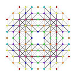 Keywords: 6-simplex t01245 A3.svg en en 6-simplex family graph in A3 en Coxeter plane own Tomruen Set of colored Coxeter plane graphs red orange yellow green vertices