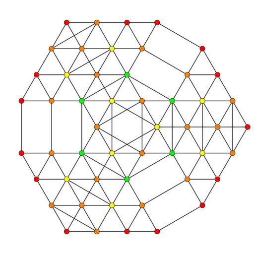 Keywords: 6-simplex t0124 A2.svg en en 6-simplex family graph in A2 en Coxeter plane own Tomruen Set of colored Coxeter plane graphs red orange yellow green vertices
