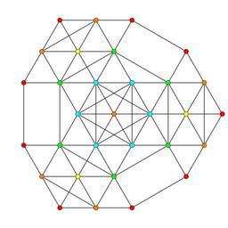 Keywords: 6-simplex t014 A2.svg en en 6-simplex family graph in A2 en Coxeter plane own Tomruen Set of colored Coxeter plane graphs red orange yellow green vertices