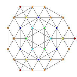 Keywords: 6-simplex t024 A2.svg en en 6-simplex family graph in A2 en Coxeter plane own Tomruen Set of colored Coxeter plane graphs red orange yellow green vertices